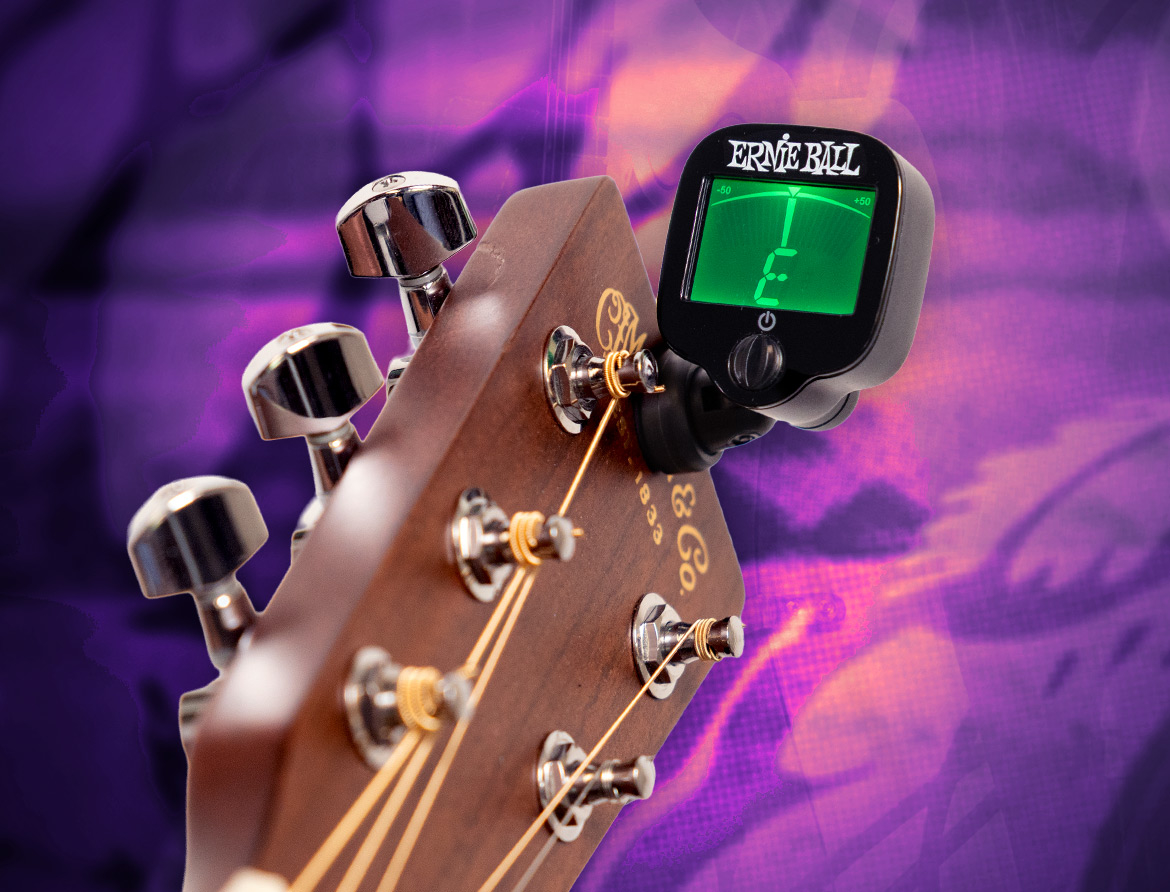 A 360-degree rotating clip attaches securely to your headstock for easy viewing.