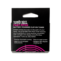 The Ernie Ball Fast Pitch clip-on tuner delivers fast, accurate tuning in a compact and user-friendly design. Perfect for any guitarist, bassist, or stringed-instrument player, the Fast Pitch's bright LCD screen ensures easy readability in any lighting, while its precise chromatic tuning mode keeps your instrument in tune. Its simple one-button operation and automatic shut-off make it incredibly convenient, and the reliable 360-degree rotating clip provides a secure fit on your headstock, so you can tune with confidence wherever you play.